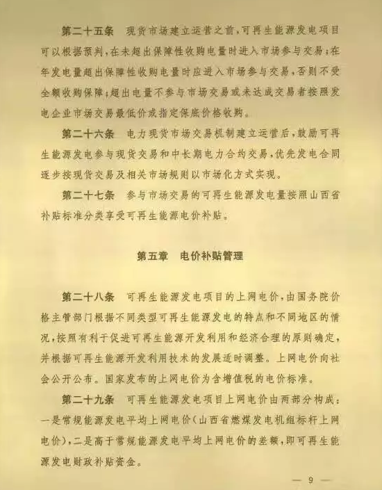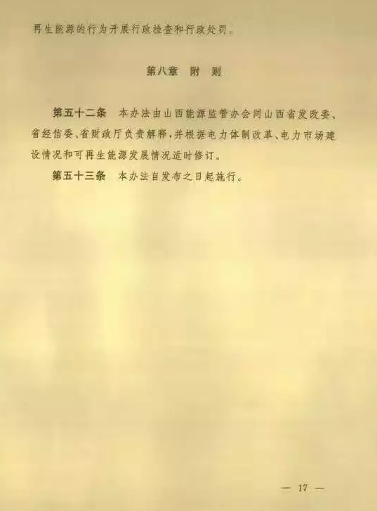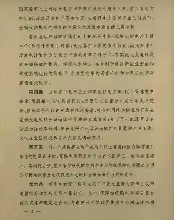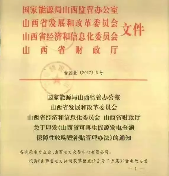 近日,国家能源局山西监管办、山西省发改委、山西省经信委以及山西省财政厅联合发布《山西省可再生能源发电全额保障性收购暨补贴管理办法》的通知。