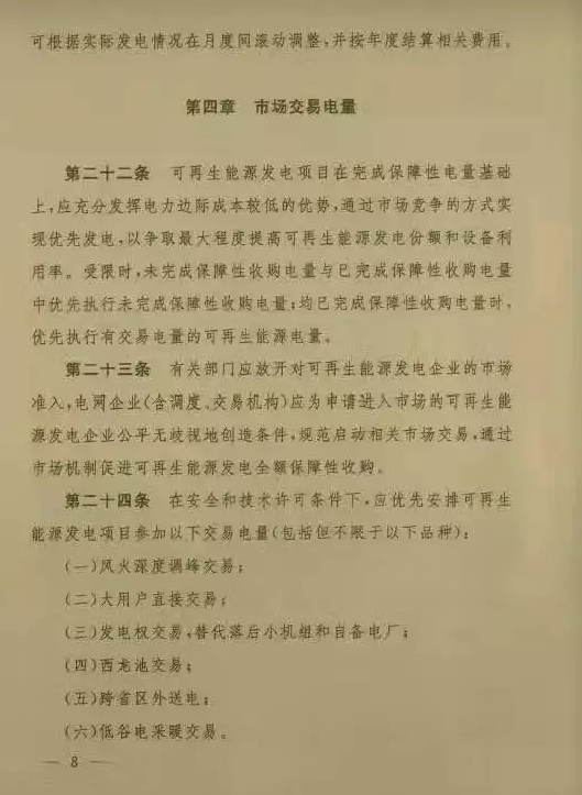 2.分散式风电暂不参与市场竞争,伤亡电量由电网企业全额收购。