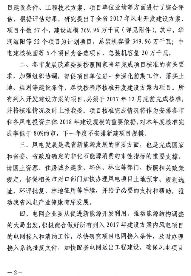 山东省发改革委关于下达2017年度山东省风电开发建设方案的通知