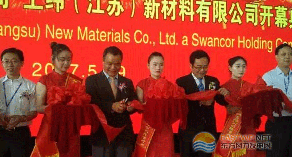 5月19日,上纬(江苏)新材料有限公司在县高新区举行建成投产仪式。上纬国际投资控股股份有限公司、上纬企业股份有限公司董事长蔡朝阳和县委书记顾云岭分别致辞。中材科技股份有限公司党委书记宋伯庐,金风科技股份有限公司执行总裁曹志刚,澳大利亚麦克理资本有限公司董事、总经理、亚洲及中东区首席营运官姚维光,丹能风力股份有限公司亚太采购总监永.麦斯特等嘉宾出席。县委副书记、县长徐华明,县政协主席吴晓飞和县领导王宁、李德平参加活动。