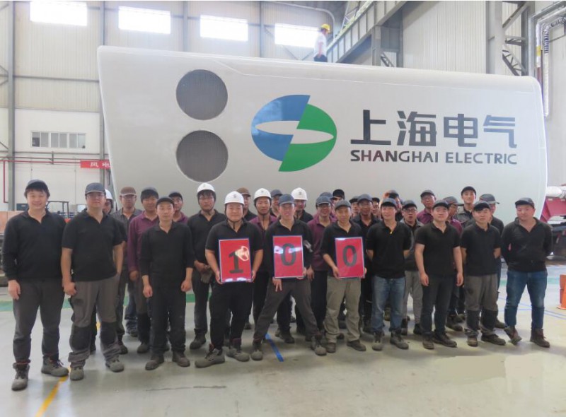 2017年5月11日,上海电气河北乐亭基地第100台2MW风机成功下线,河北公司总经理、部门领导、质检人员及车间员工,一同见证了这一值得庆贺与纪念的美好时刻。