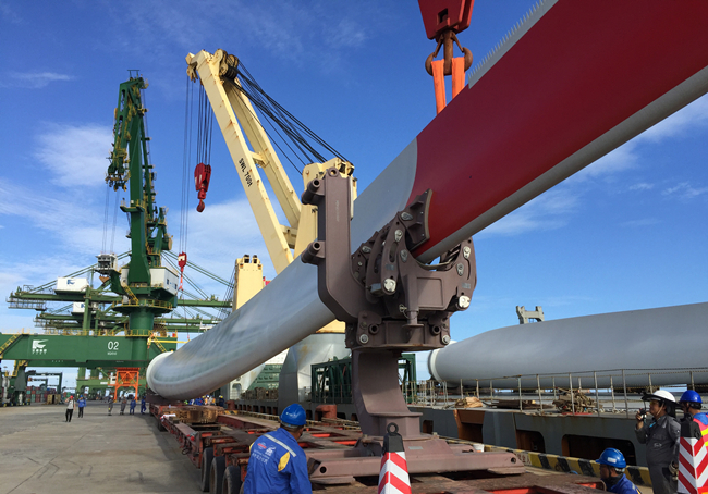6月14日,由丹麦进口的国内最大海上风电机组在福州江阴港顺利完成卸船。此次接卸的16件超大件精密仪器为福清兴化湾海上风电场首套风机组件,单件风电机舱重达292.1吨,单片叶片长达75.394米。靠泊作业前,公司操作部、技术部、安质部成立了项目团队,提前会同船舶代理、理货、货主等外协单位,对作业方案流程、船舶安排、道路通行情况、大件车辆安排、交通组织、货物绑扎加固方案等进行反复考察论证,确保接卸万无一失,赢得了客户的肯定和赞赏。此次卸船任务的圆满完成,又一次彰显了江阴港重大件装卸实力。