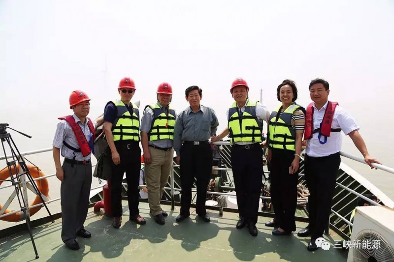 6月9日,中国海洋工程咨询协会名誉会长孙志辉、会长周茂平、副会长兼秘书长屈强等有关专家一行赴江浙公司调研考察响水202兆瓦近海风电场项目,集团专业总工程师翟恩地、原总经理助理柳地陪同。调研组乘船赴响水海上风电场实地调研考察海上升压站、风机机组的运行状况,并开展交流座谈,听取了三峡集团海上风电业务推进情况、响水近海风电场的建设和生产经营情况汇报,双方还就海上风电用海问题进行了交流。