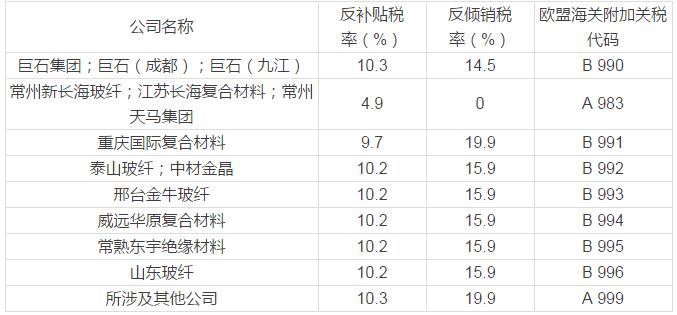 欧盟对中国连续玻纤产品征收反倾销税和反补贴税 总税率达30.2%
