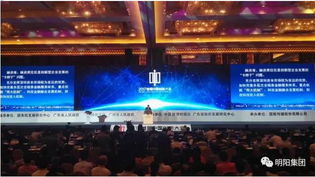 由国务院发展研究中心与广东省政府联合指导的首届中国创新大会24日在广州开幕,各界人士会聚一堂、畅谈“创新”。明阳智能集团参加大会并围绕“智慧能源·普惠全球”的主题展示了明阳的创新普惠理念和智慧能源整体解决方案。