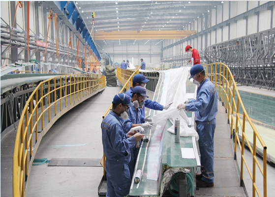 “风力发电机组使用的叶片越长,受风面积就越大,转化的风能也就越多,发电量也就越高。”公司工艺装备部经理李辉介绍,68.6米风电叶片是中材叶片在超低风速领域的再次突破,首次将3兆瓦叶片的风轮直径扩大到140米,进一步提升风力发电效能。经我国能源领域权威认证机构北京鉴衡认证中心鉴证,中材叶片设计研发的68.6米风电叶片为国内首创,该型叶片的成功下线和批量生产标志着中材叶片研发制造技术在国内处于领先地位,将有力促进我国风能产业加快发展转型升级。