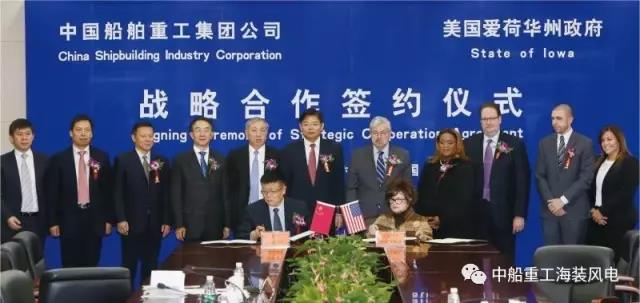 由于出口美国的2台样机以其优质可靠的运行赢得了风电专家和美国各界人士好评,为扩大美国市场份额,2015年,中国海装再次出口14台风机到美国市场,并于2016年在美国实现首次批量装机并网发电。美国当地时间2016年9月6日,中船重工董事长胡问鸣出席中国海装28MW风电项目并网仪式,见证签署引进税务投资人合作协议和800MW风电项目协议并致辞,强调“要推动集团公司优良装备走向美欧等发达国家市场,当好中国装备‘走出去’领头羊。”期间,胡问鸣董事长会见爱荷华州州长布兰斯塔德,强调大力发展风电等新能源产业是中船重工的战略选择,希望双方扩大合作,促进共同发展。布兰斯塔德热情介绍习近平主席与爱荷华州的渊源并展示互访照片;他说,中船重工已成为中国在爱荷华州投资最大的中资企业,将推动风场资源落实。不久,2016年11月16日,中船重工与美国爱荷华州举行战略合作签约仪式。中船重工总经理孙波总经理和布兰斯塔德都表示,要共同为中美友谊和双方携手发展作出积极努力。