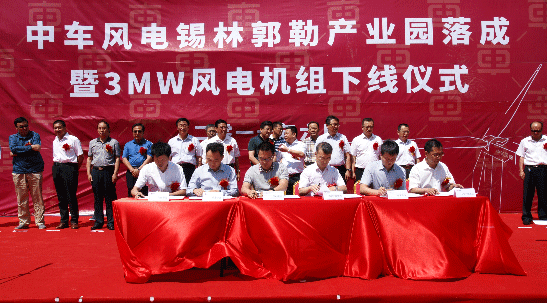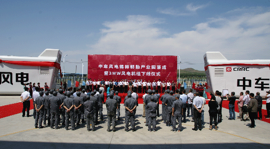 6月28日上午10点30分,内蒙古锡林郭勒盟太仆寺旗,山东中车风电有限公司3MW风电机组在锡盟风电产业园成功下线。