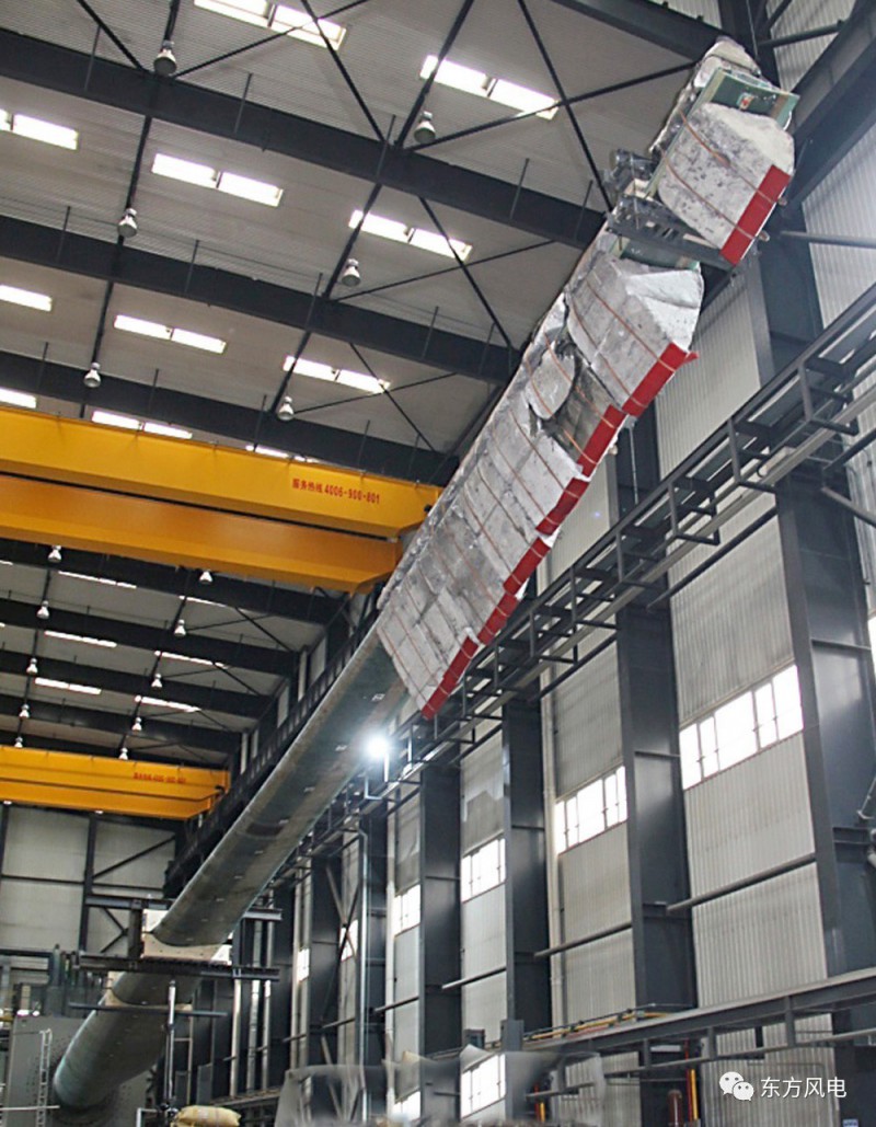 近日,在中国船级社的见证下,东方风电完全自主研发的2MW超低风速B625A叶片在天津SGS公司顺利完成了全尺寸疲劳试验,标志着该款叶片顺利完成了所有设计及试验流程,向公司“百日会战”劳动竞赛报捷。