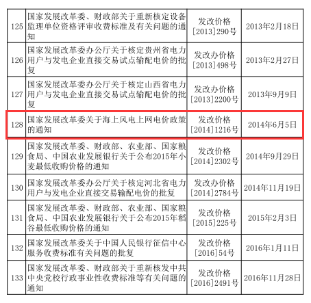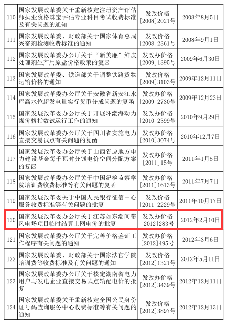 国家发改委昨日发布第5号公告,决定废止《国家物价局、财政部关于发布中央管理的旅游系统行政事业性收费项目和标准的通知》等133件价格规范性文件。其中,涉及风电价格规范性文件2个,分别为:《国家发展改革委办公厅关于江苏如东潮间带风电场项目临时结算上网电价的批复》、《国家发展改革委关于海上风电上网电价政策的通知》。