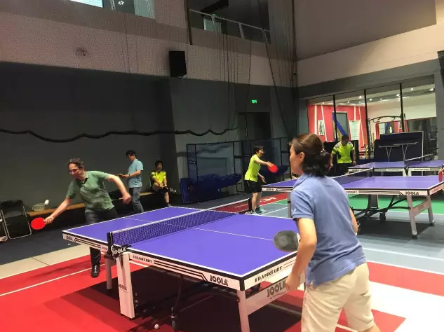 Stephan秘书长与朱芳切磋球艺、领会国球艺术