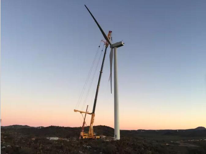 2017年4月,龙源南非德阿一期风电项目完成全部67台风电机组吊装。