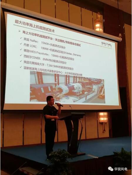 会上华锐风电集团公司设计研究院副院长黄强针对海上大功率机组发展现状、技术趋势及超大功率测试技术进行了介绍。