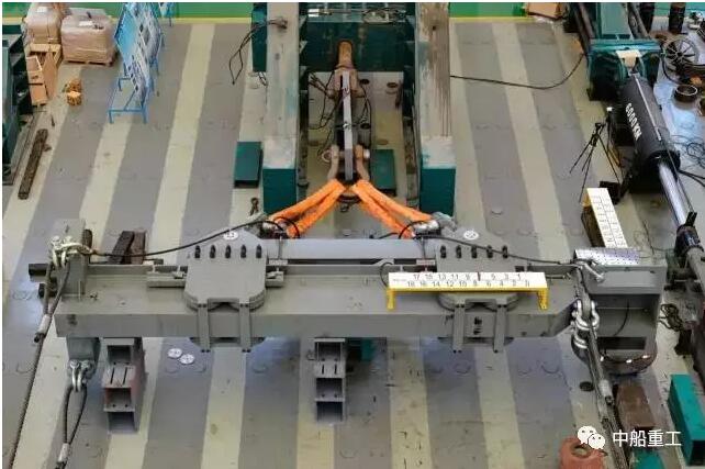 该吊具重达35吨,外形复杂,且客户要求在吊具加载过程中实时改变整套试验系统的受力状态,这对试验的实施是一个重大挑战。七〇二所打破传统模式,结合现有试验设施,设计加工了随动连接装置、吊具翻转装置、吊具紧固装置及横向移动降摩擦装置等工装,建立了满足吊具智能调节的功能试验方法,成功解决了吊具智能调节考核技术的难题,圆满完成试验,得到客户的一致好评。