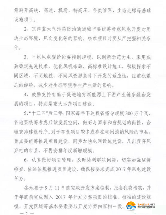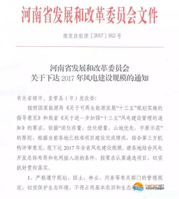 河南省发改委下发了《关于下达2017年风电建设规模的通知》