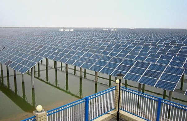 以山东东营曙光太阳能投资可再生能源项目为代表,其业务经理唐永超介绍了一个太阳能综合农业项目:建有230,000个太阳能电池板,装在水面以上的混凝土桩上,占地面积约1000公顷,规模约160个足球场。且这种动力一体化农业方法可以应用于太阳能电池板下的种植作物或水果。
