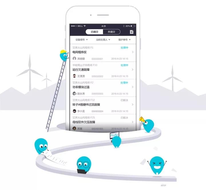 其次,hopeScan禾望移动助手能够监控全国各场站设备的实时运行数据,实时掌握场站的的运行状态,并可一键提取故障数据并创建远程维护单,推送运维专家同步分析现场问题,实现远程运维协同,并跟踪远程运维的处理进程。