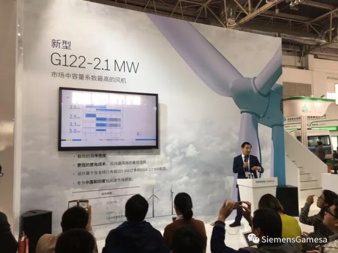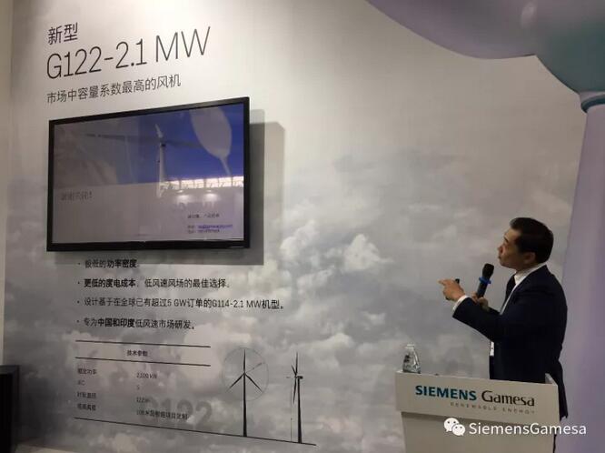 随后,SGRE 亚太区产品经理向大家介绍了SGRE 的新机型——G122-2.1 MW。该款机型是专为中国低风速市场设计,拥有市场中最高的容量系数以及极低的功率密度,可以为低风速风场带来最佳的收益。