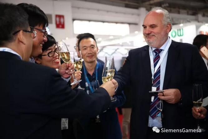 在精彩的产品介绍之后,SGRE 亚太区的管理者们与在场观众共同举杯,希望新产品可以为中国带来更多的绿色能源,创造更美好的环境。