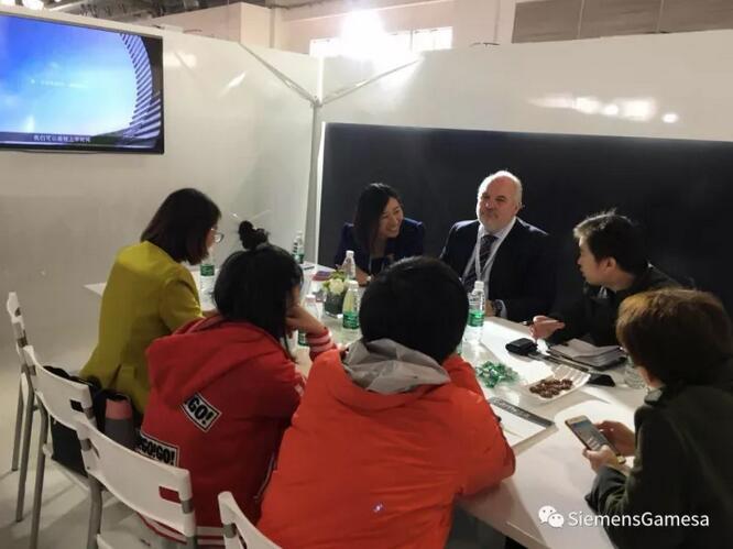 国内主要的几家风电新闻媒体也纷纷到场,对SGRE 亚太区总裁Mr. Alvaro以及SGRE 亚太区市场部负责人刘扬女士进行了采访。他们也表示期待我们新产品在中国市场的表现。
