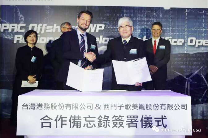 Siemens Gamesa Renewable Energy与台湾港务公司签署合作备忘录(MoU),开始合作调查台中港地区的海上风力发电开发事业。