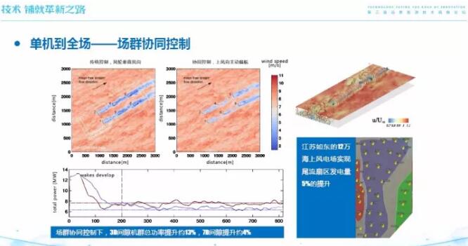 “然而我们很快意识到,单台风机的最优控制可能并不代表全场最优控制,因此又提出了场群控制的方法,通过风机之间的信息共享和协同作用实现全场发电量的最大化。”张轩说。