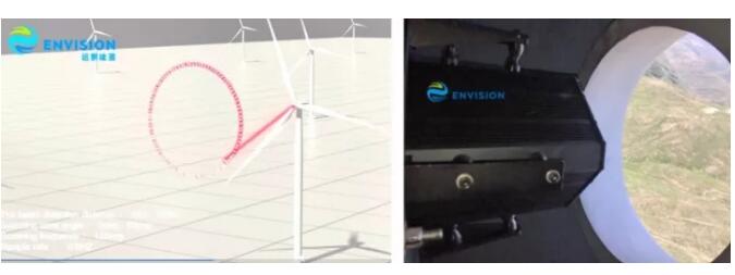 远景的研发专家们意识到智能风机不应仅仅是被动地感知风,只有提前预知未来的风况,风机才能够实现前馈控制,提前制订偏航、变桨策略,在风来临之前以最佳的姿态迎接风,这样才能实现风能的最大捕获并在极限风条件下采取有效的保护策略,从而有效提升发电量,并降低风机载荷。远景自主研发的激光雷达完全为风机量身定制,50个以上的有效测点实时获取风速、风向、湍流、剪切等来流信息,轮毂中心的布置方案彻底摆脱了叶轮转动对附近空气流动造成的干扰,并且能够主动校准,机舱与风向夹角始终保证准确,避免了人工校准造成的误差。