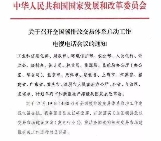 国家发改委将在12月19日正式宣布市场启动,并就落实《全国碳排放权交易市场建设方案(发电行业)》,推动全国碳排放权交易市场建设有关工作进行动员部署。