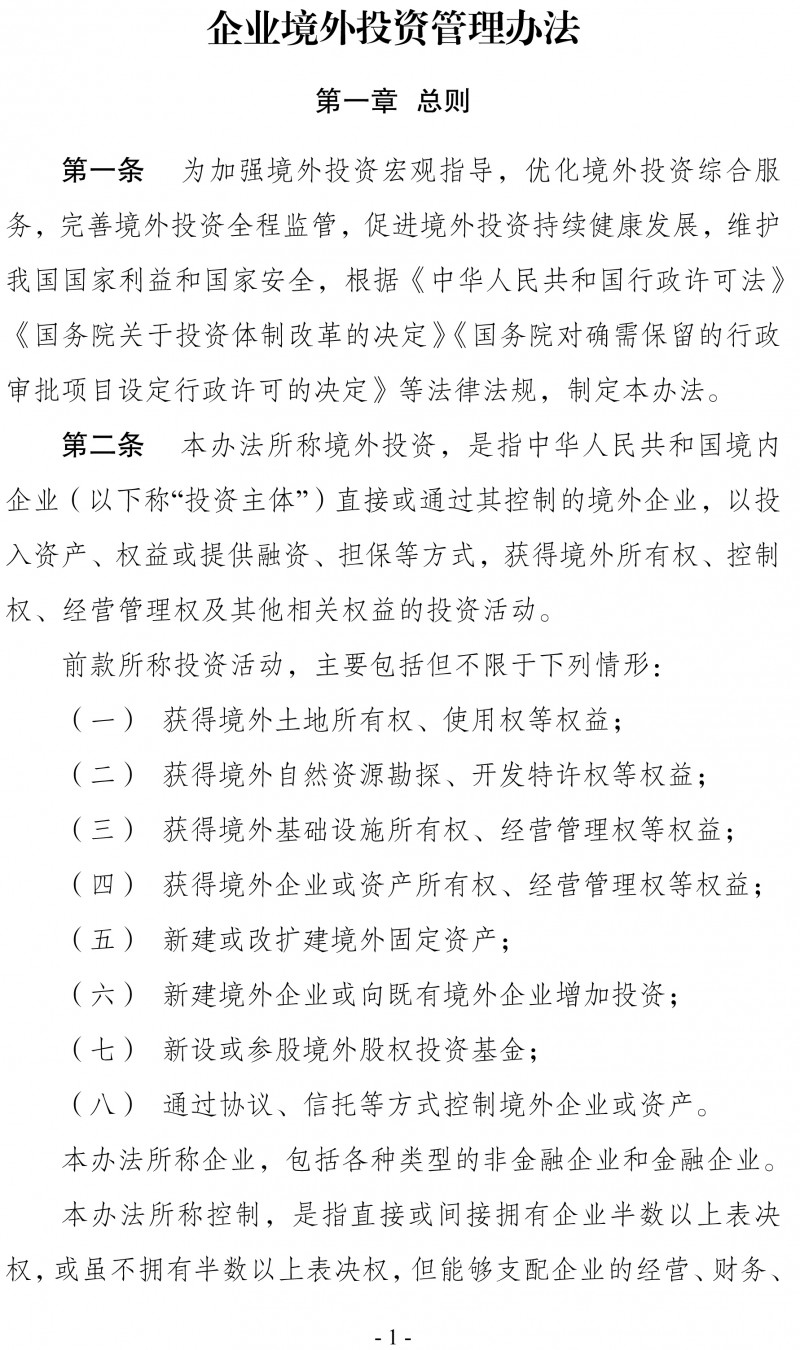 《企业境外投资管理办法》已经国家发展和改革委员会主任办公会议审议通过,现予公布,自2018年3月1日起施行。