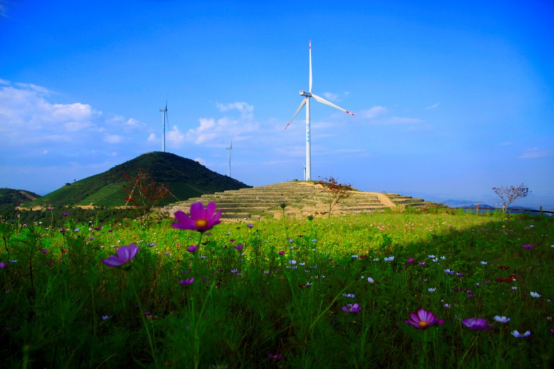看着徐徐旋转的“大家伙儿”,当地百姓未曾想象风电场的建设会对他们的生活发生如此大的变化,早些年村民们进出大山都得倒三四趟车,虽然有丰富的自然资源但无法与外界联通。自从中广核新能源宁海一市风电场建成,场内道路变成了一条致富之路。村民们种植的山野珍馐,如茶叶、梅子、山林野味走出大山;“四季有花,果树茂盛,茶树飘香”的风电场与其山脚的钱童古镇共同创建了旅游生态圈,成为江宁老百姓假日自驾出游的又一目的地,“访古镇,望风车”也成为当地新的旅游名片;伴随着交通、旅游不断发展,山间一家家农家乐也应运而生,每年都有很多人选择风电场作为自驾游的目的地,一些年轻人则到场区拍婚纱照。