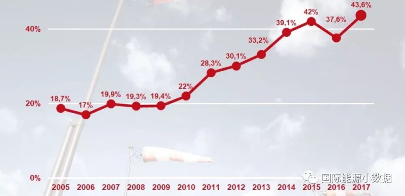 2017年丹麦风电装机5.3吉瓦 发电占比43.6% 创历史新高