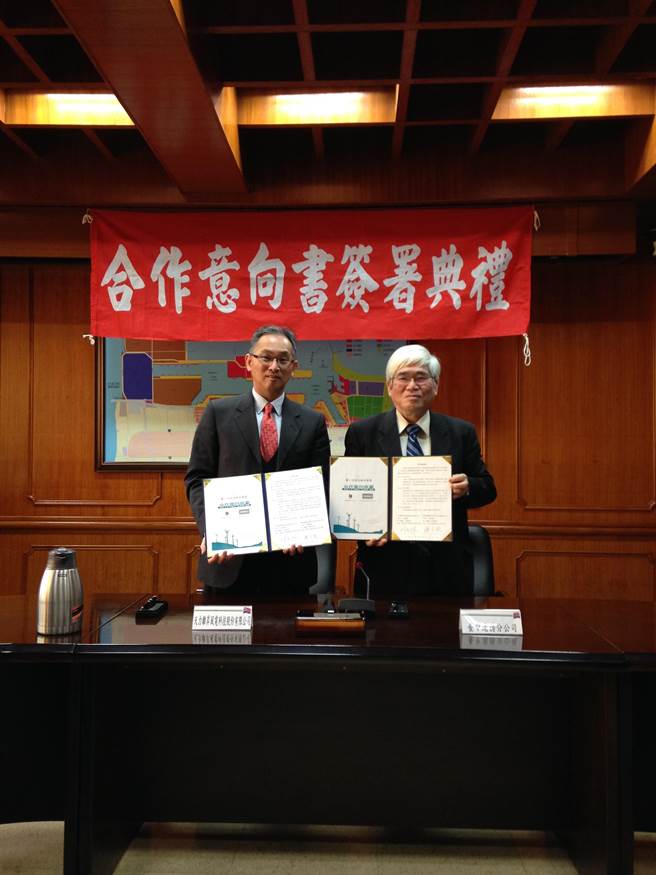 台中港务分公司总经理锺英凤(右)今日与天力离岸风电科技公司签署合作备忘录