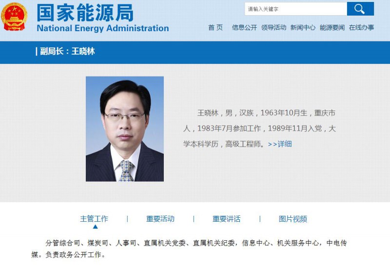 据国家能源局网站显示,王晓林分管综合司、煤炭司、人事司、直属机关党委、直属机关纪委,信息中心、机关服务中心,中电传媒。负责政务公开工作。