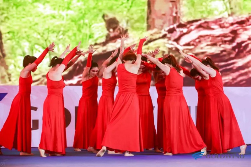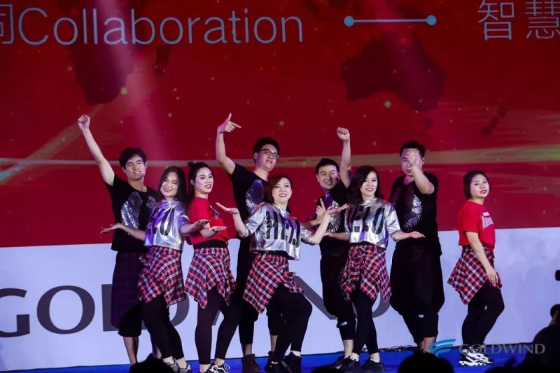 来自金风设计研究院的新生力量带来了舞蹈《旋转—跳跃》。他们把开放共赢的互联网基因带进了金风科技的同时,也把Panama神曲跳出了“风”一样的节奏。