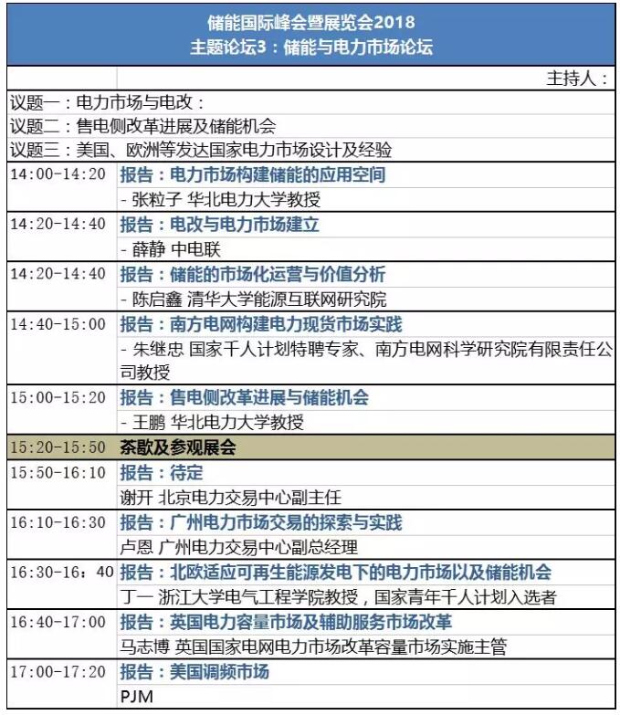 在电力行业的深刻变革中,储能如何把握机遇,借势发展?为帮助储能产业同仁准确把握产业政策走向,挖掘储能发展机遇,储能国际峰会暨展览会2018特设“储能与电力市场”主题论坛,将邀请国家电网与南方电网的知名电力专家介绍最新电改进程,邀请华北电力大学王鹏教授和清华大学陈启鑫副教授等专家解析储能技术在中外电力市场中的地位与价值。参会嘉宾将通过本次论坛了解到在最早开启辅助服务市场的山西省、削峰填谷最受追捧的江苏省,售电侧改革最为活跃的广东省,储能技术将如何接受市场检验。
