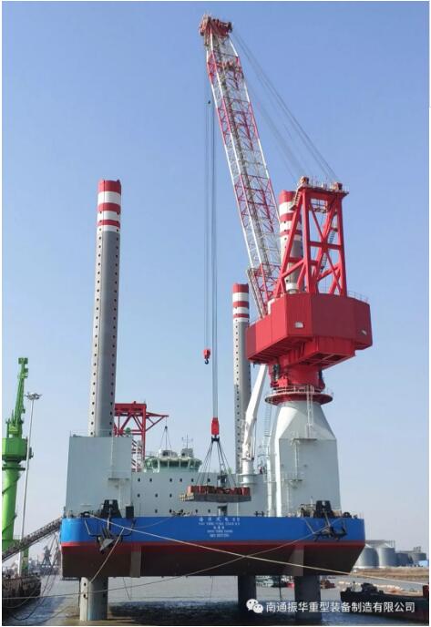 上海振华重工为“海洋风电69号”自升式风电安装船配套的500T绕桩式起重机顺利交付