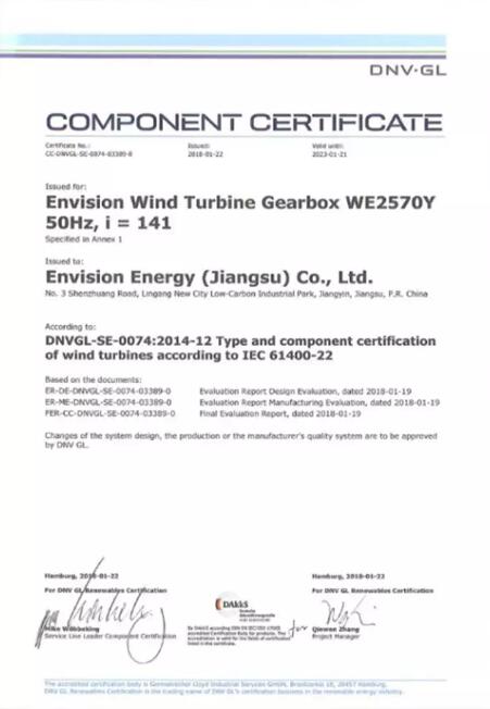从整机技术的演进趋势看,风电核心部件是下一轮风电整机行业创新的突破口。这意味着,风电整机厂商的核心部件技术穿透能力将决定其未来市场占据的版图,国际权威认证机构DNV GL为智慧能源技术公司远景能源颁发风电齿轮箱认证证书也印证这样一个逻辑:技术穿透核心部件供应链已是整机业升级换代的重要一步,人们把对美好能源的希望寄托给真正具备全球智力整合能力的技术公司。