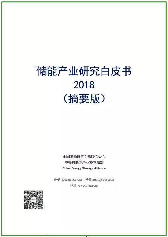 免费领取《储能产业研究白皮书2018》摘要版