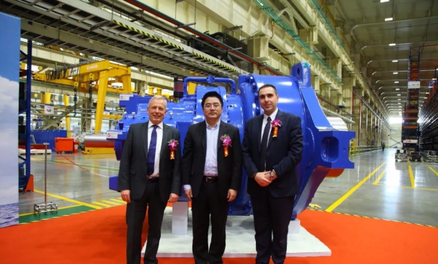 上海电气4MW海上机组首台低风速风机主齿轮箱下线