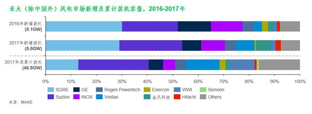 l Vestas的11款风机机型能够适应区域内多种风场条件,满足多样需求,令Vestas成为区域内新增并网容量分布最广的整机商,并赶超GE荣获第二;