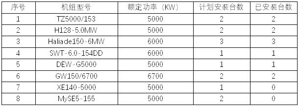 该项目总装机容量约8万千瓦,项目投资约14.7亿元,总共布置14台机位,项目到目前为止已完成安装11台,具体装机详情见表1: