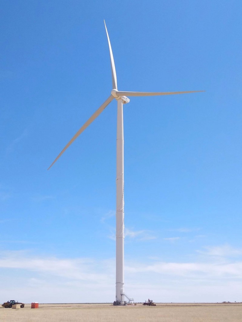 该机组位于美国德克萨斯州坎宁市(Canyon)内由西德克萨斯农工大学(WT A&M)、美国安全检测实验室(UL)与金风科技共同开发建设的试验风场。值得一提的是,此台GW3.0MW(S)机组轮毂中心高度为130米,叶尖高度近200米,是目前美国境内最高的风力发电机组。