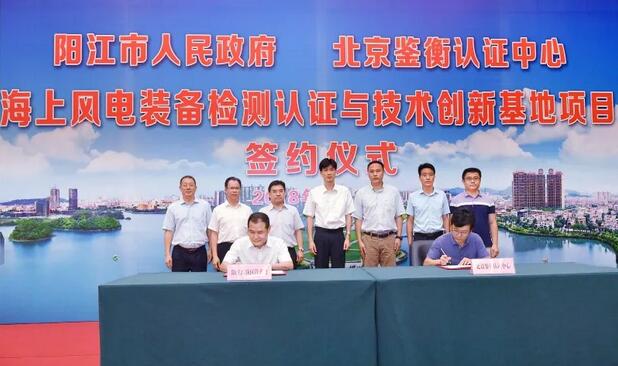 5月11日中午,阳江高新区管委会与北京鉴衡认证中心,在市区举行海上风电装备检测认证与技术创新基地项目签约仪式。