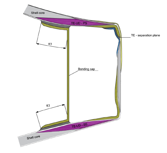 增加TE-UD腹板,大大增加超大型叶片的摆振刚度及后缘安全性。