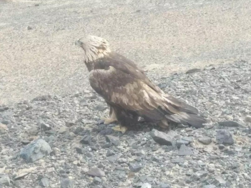 后来得知,专家鉴定此鸟系鹰属雕科猛禽金雕,是国家一级保护动物,数量十分稀少。它是北半球上一种广为人知的猛禽。金雕以其突出的外观和敏捷有力的飞行而著名;成鸟的翼展平均超过2米,体长则可达1米,其腿爪上全部都有羽毛覆盖著。一般生活于多山或丘陵地区,特别是山谷的峭壁以及筑巢于山壁凸出处。栖息于高山草原、荒漠、河谷和森林地带,冬季亦常到山地丘陵和山脚平原地带活动,最高海拔高度可到4000米以上。以大中型的鸟类和兽类为食。
