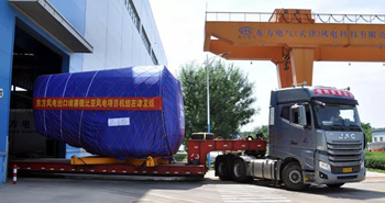 6月27日,东方电气风电有限公司(简称东方风电)在天津基地举行埃塞俄比亚阿伊萨II期项目发运仪式,由东方风电提供的DF103-2500型直驱风力发电机组以及配套的DEW-B505A-2500型叶片穿着DEC的盛装,即将出发前往埃塞俄比亚,执行清洁能源输送使命。