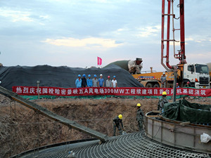 据介绍,哈密景峡300兆瓦风电项目位于新疆哈密市东南160公里的戈壁滩上,水电七局主要承担该项目120台2.5兆瓦风机及箱变基础、90公里检修道路施工。2017年6月15日,首批40台风机及箱变基础、21公里检修道路全部完工,并投产发电;2018年4月15日,续建项目工程正式复工。
