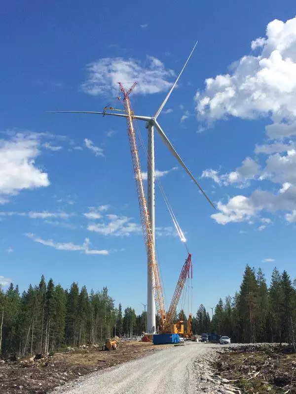 北极风电项目位于瑞典皮特奥市(Pitea),计划安装179台单机容量3.63兆瓦的风机,预计2019年底前完成安装并运营,总装机容量为65万千瓦,是欧洲目前最大的单体陆上风电场。该项目可以满足40万户家庭的用电需求,每年可以减少二氧化碳排放75万吨。