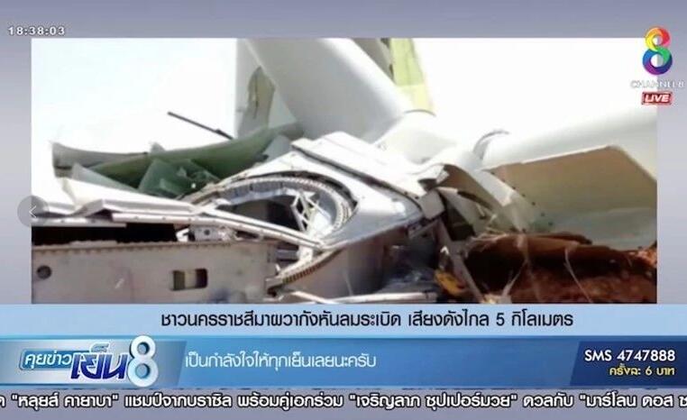 10月30日当地时间上午11点30分,位于泰国Nakhon Ratchasima和Chaiyaphum省交界处的一处风场出现风电机组倒塔事故。