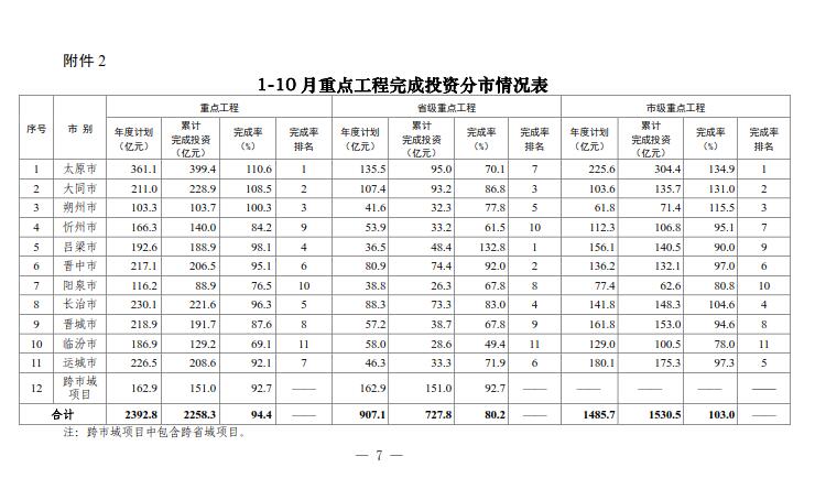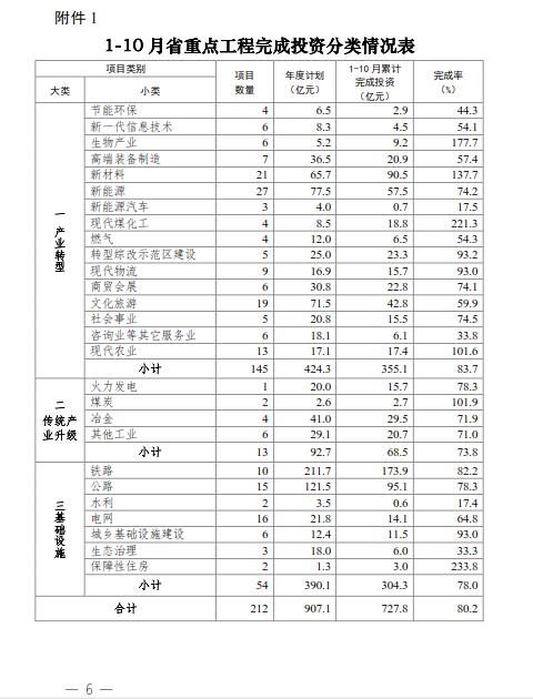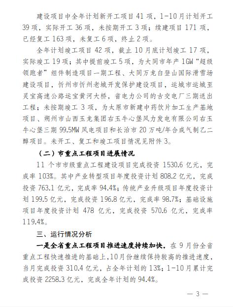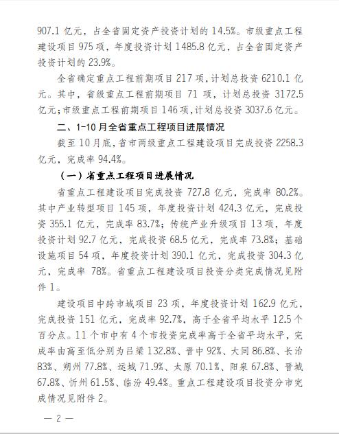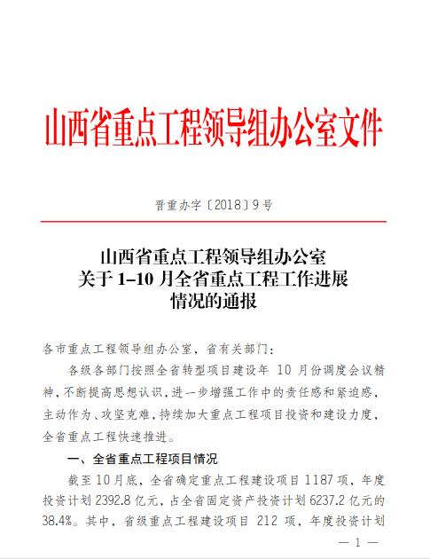 近日,山西省发改委发布《1-10月全省重点工程工作进展情况的通报》。《通报》指出,截至10月底,山西省确定重点工程建设项目1187项,省市两级重点工程建设项目完成投资2258.3亿元,完成率94.4%。其中风电项目有4项,年度计划投资11.8亿元。分别是: